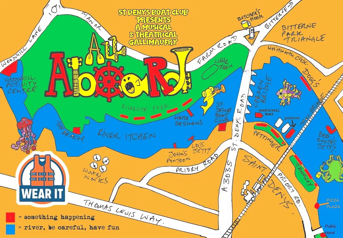 The tidal river Itchen will be hosting numerous river goers on the 3rd September at the All Aboard festival. You can come and view the spectacle or join in by taking to the water yourself; enjoy a day of watery theatricals and music around the St Denys and Bitterne Park stretch of the river Itchen. Dave will be kayaking approximately 1.5km upstream to Woodmill as part of the event.